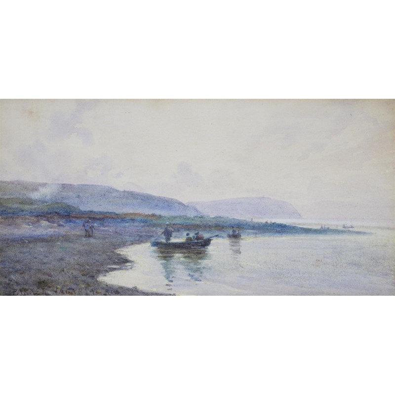 Parker Hagarty (1859-1934) Fishermen on the shore Signed Watercolour 18 x 36cm; 7 x 14in