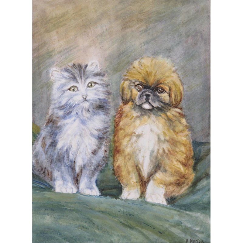 ‡A. Morton (20th Century) Best Friends Signed Watercolour 28 x 21cm; 11 x 8¼in With a gouache of...