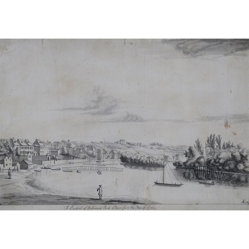 English School 1748 A Prospect of Richmond Park and Town from the Thames side Signed with a...