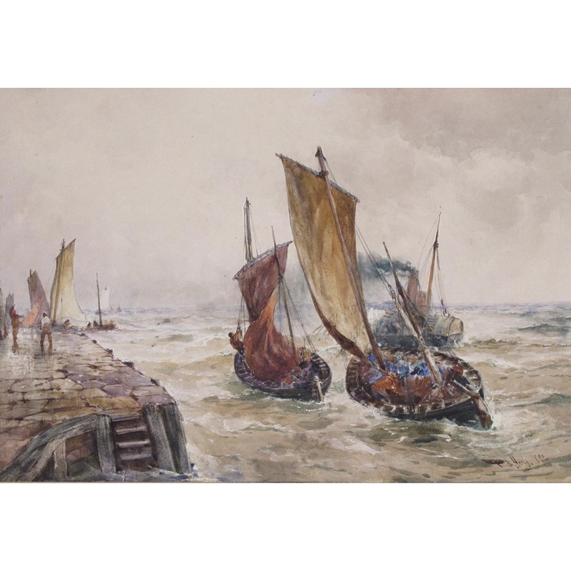 Thomas Bush Hardy (1842-1947) Fishing boats and a paddle steamer leaving harbour Signed and dated...