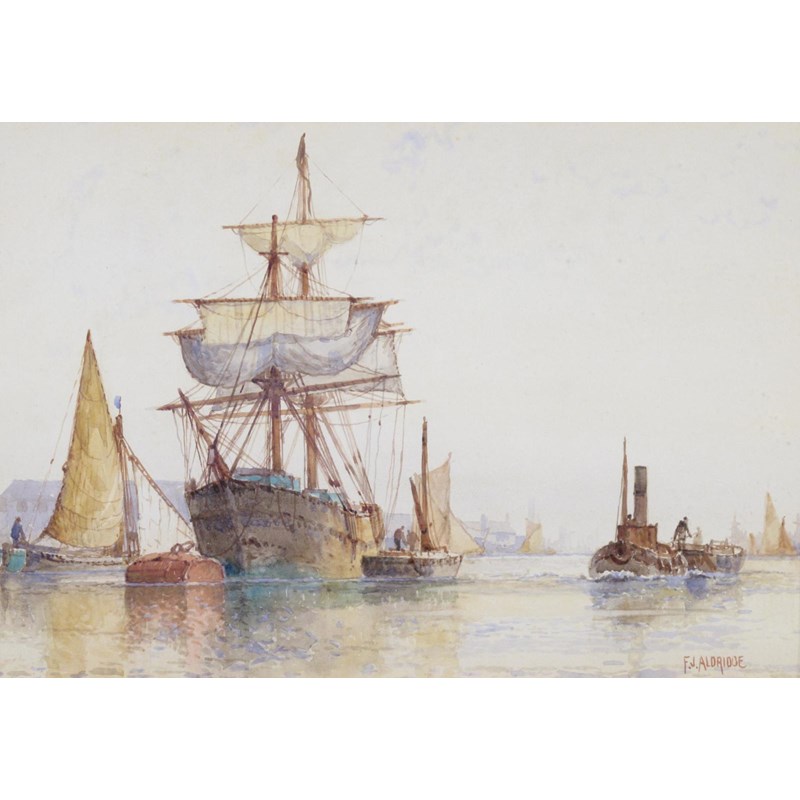 Frederick James Aldridge (1850-1933) Sailing ships and Steamer Signed Watercolour 25 x 37cm; 10 x...