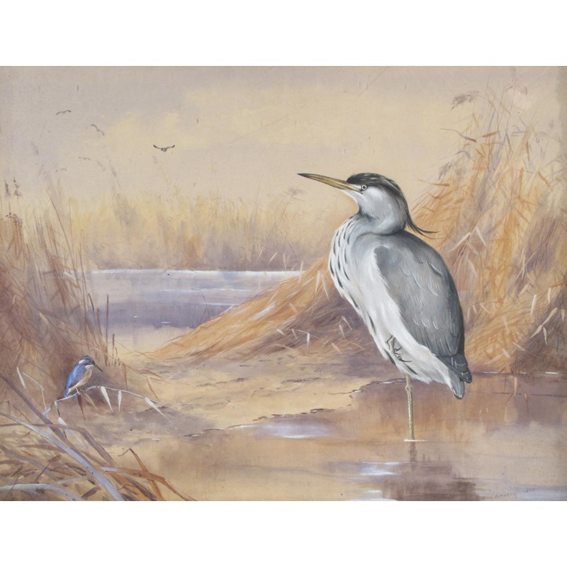 E. J. Amoore (19/20th Century) A Heron and Kingfisher; A mallard A pair