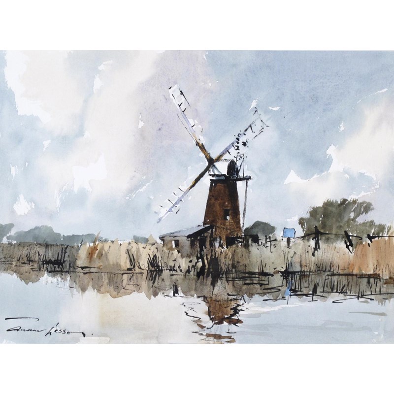 Edward Wesson (1910-1983) Norfolk Windmill Signed Watercolour 24.5 x 34.5cm; 9¾ x 13½in