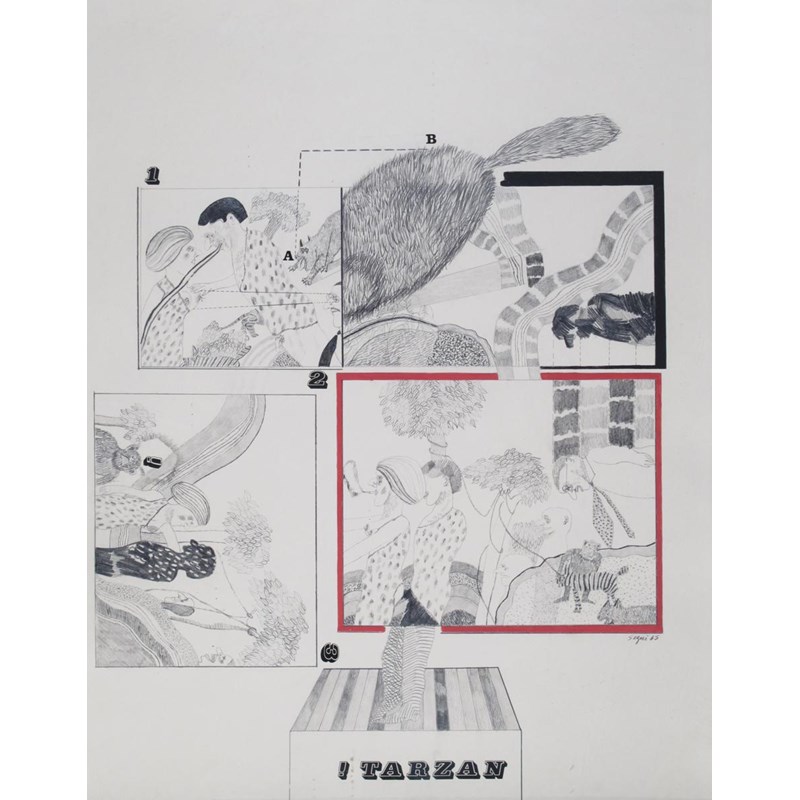 Antonio Segui (Argentine b. 1934) I Tarzan Signed and dated 65 Pencil and bodycolour 61 x 47cm;...