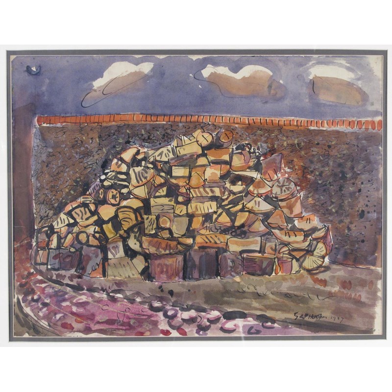 George Hooper (1910-1994) The log pile Signed and dated 1947 Pen ink and watercolour on buff...