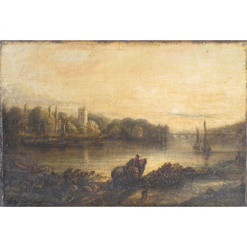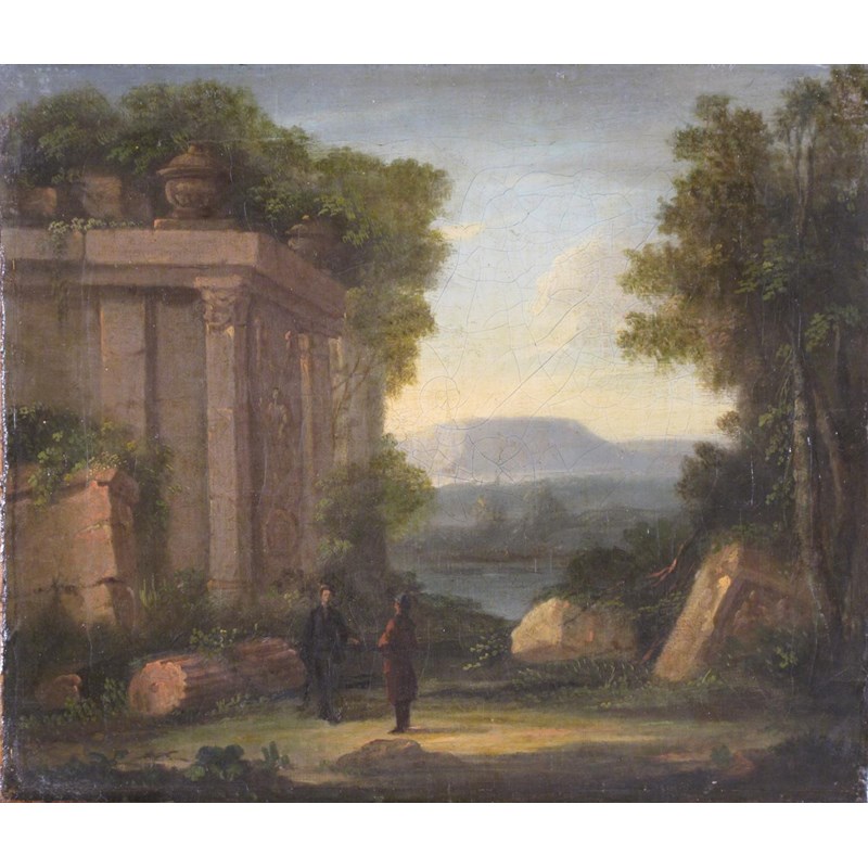 English School c. 1800 Figures by ruins in an Italianate landscape Oil on canvas
