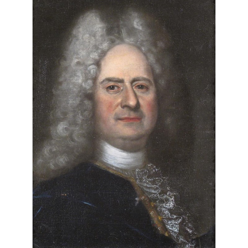 Portrait of a gentleman, wearing a blue velvet coat and a lace collar