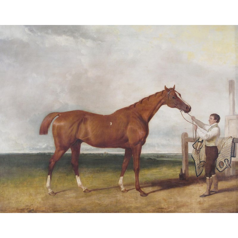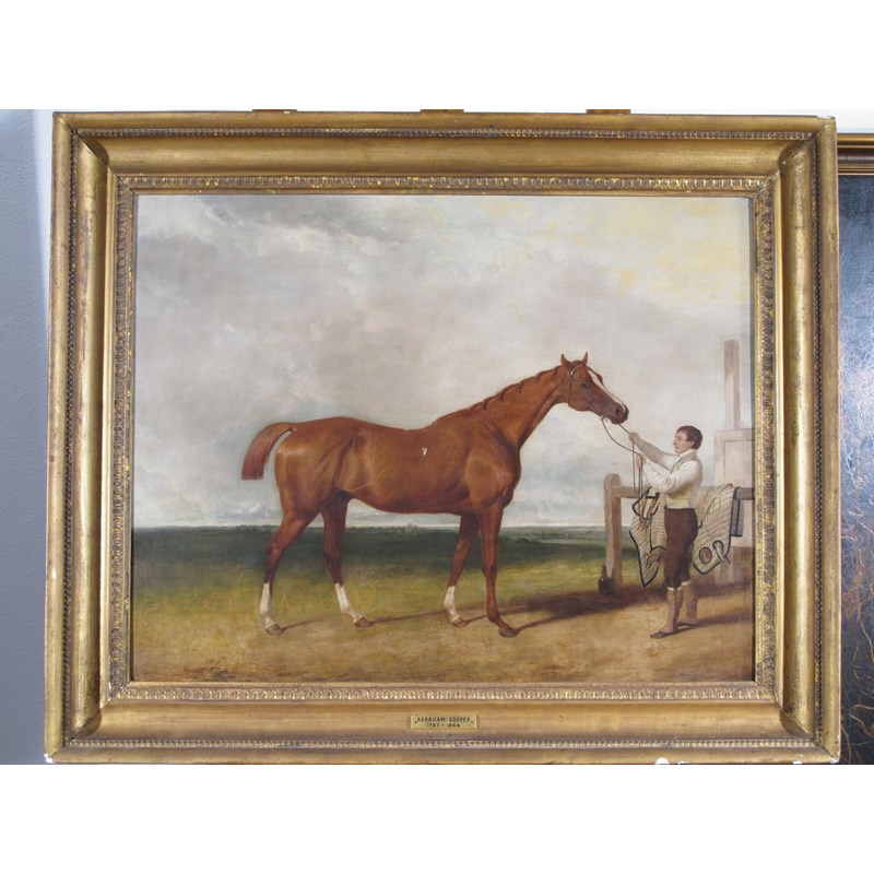 Abraham Cooper (1787-1868) A bay hunter in a park held by a groom Signed with monogram and dated...
