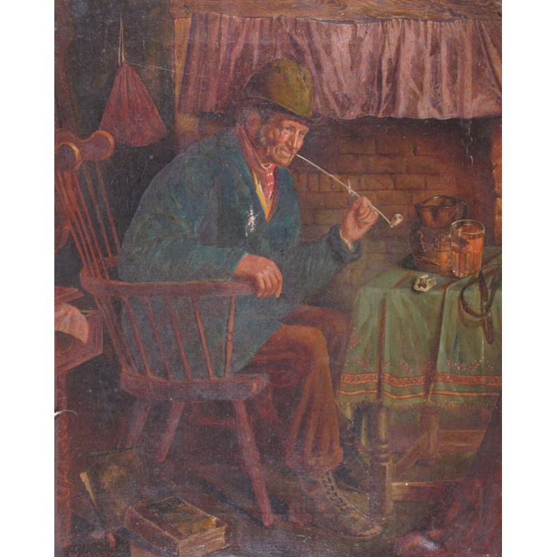 A. Knight (19th Century) A rustic with a clay pipe in an interior Signed and dated 1887; Oil on...