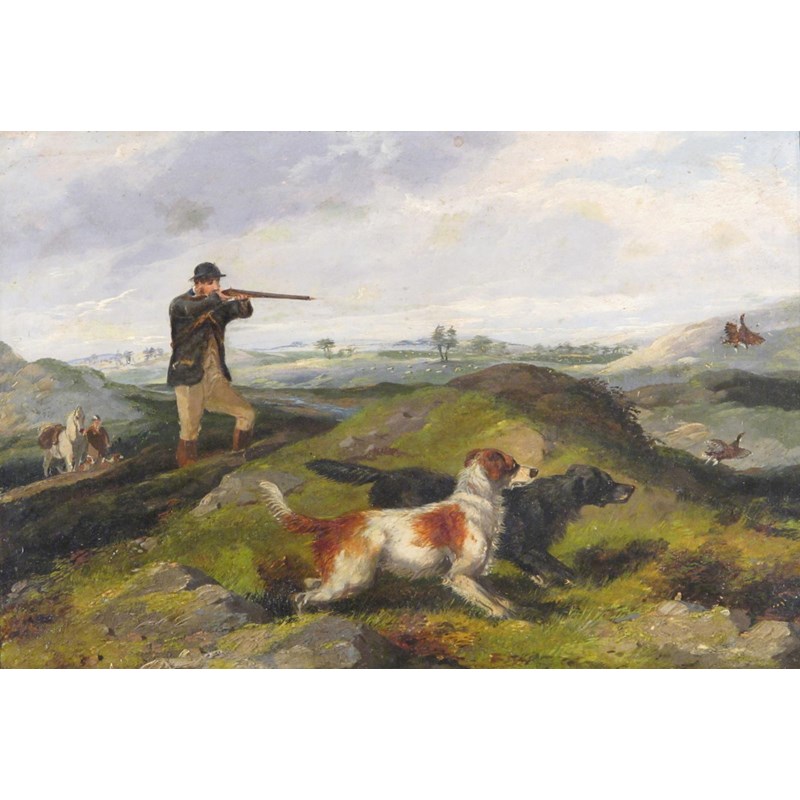 English School 19th Century Partridge shooting; Pheasant shooting A pair