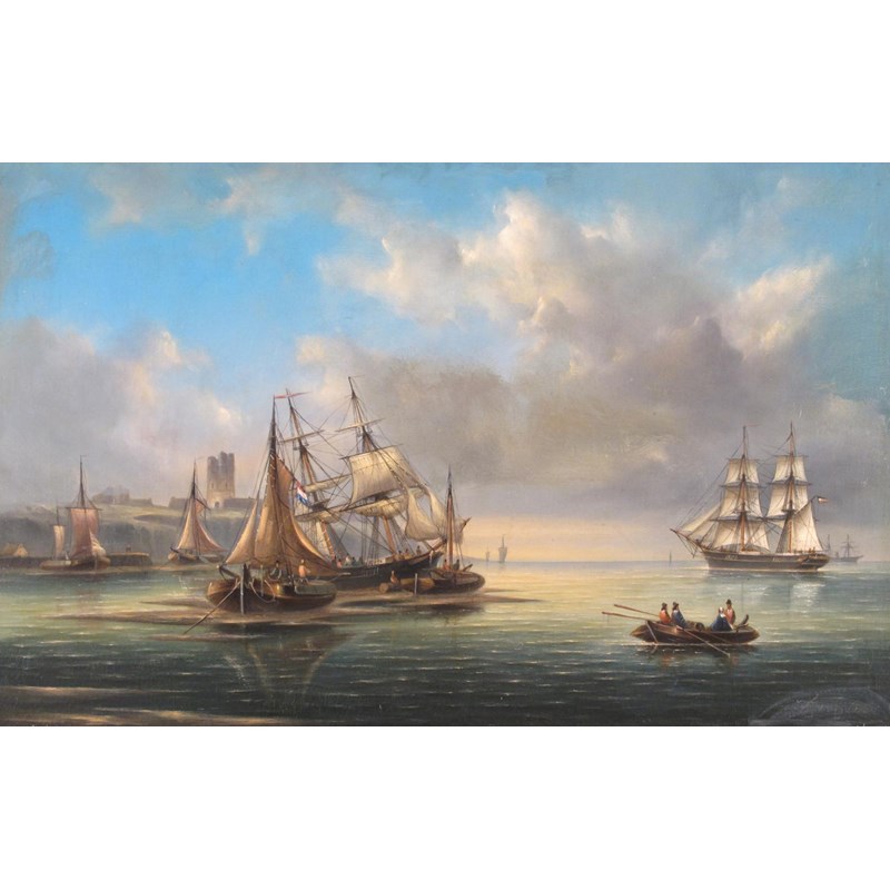Govert Van Emerick (Dutch 1808-1882) Dutch shipping in a harbour Signed Oil on canvas 62 x 96cm;...