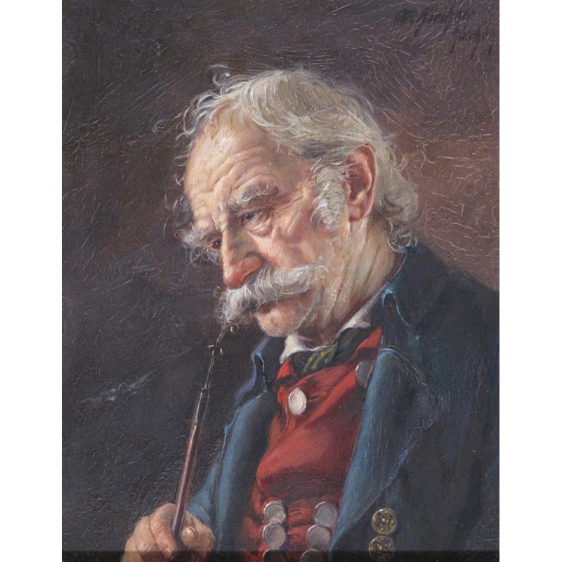 Otto Kirchner (German 1887-1960) Old man smoking a pipe Signed and inscribed Munchen Oil on board...