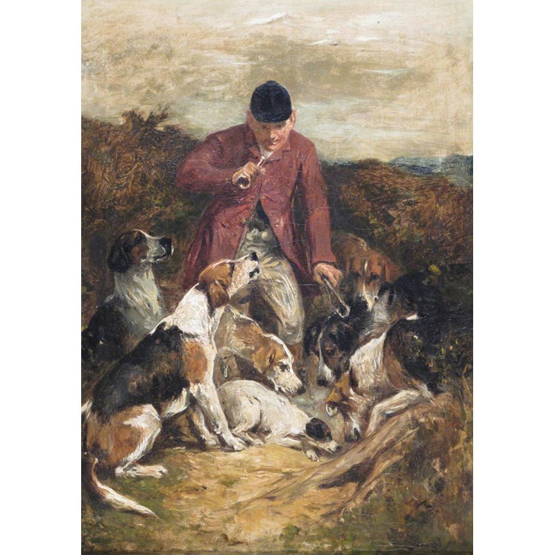 John Emms (1843-1912) A Huntsman with hounds Signed Oil on canvas 37 x 26cm; 14½ x 10½in...