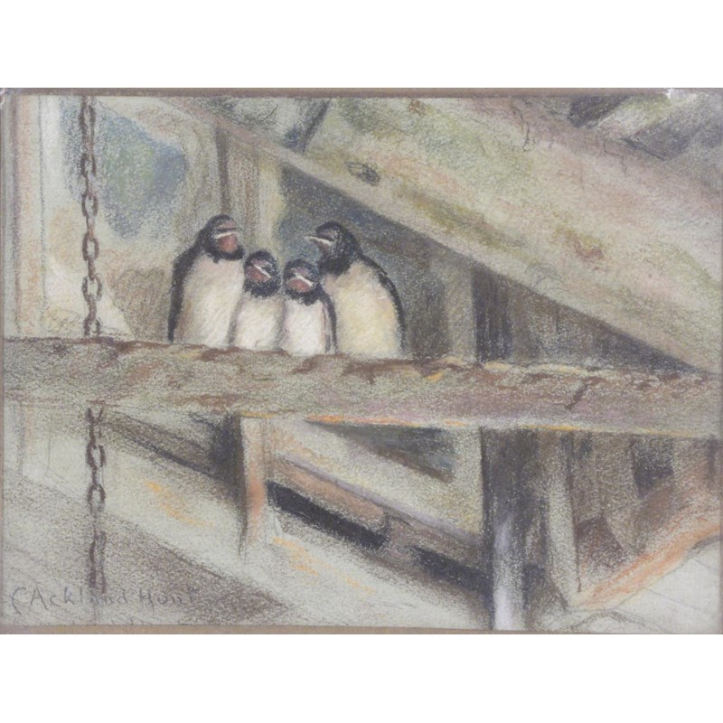 With a watercolour landscape, a chalk nativity scene, a chalk of nesting birds all by the same hand (4)