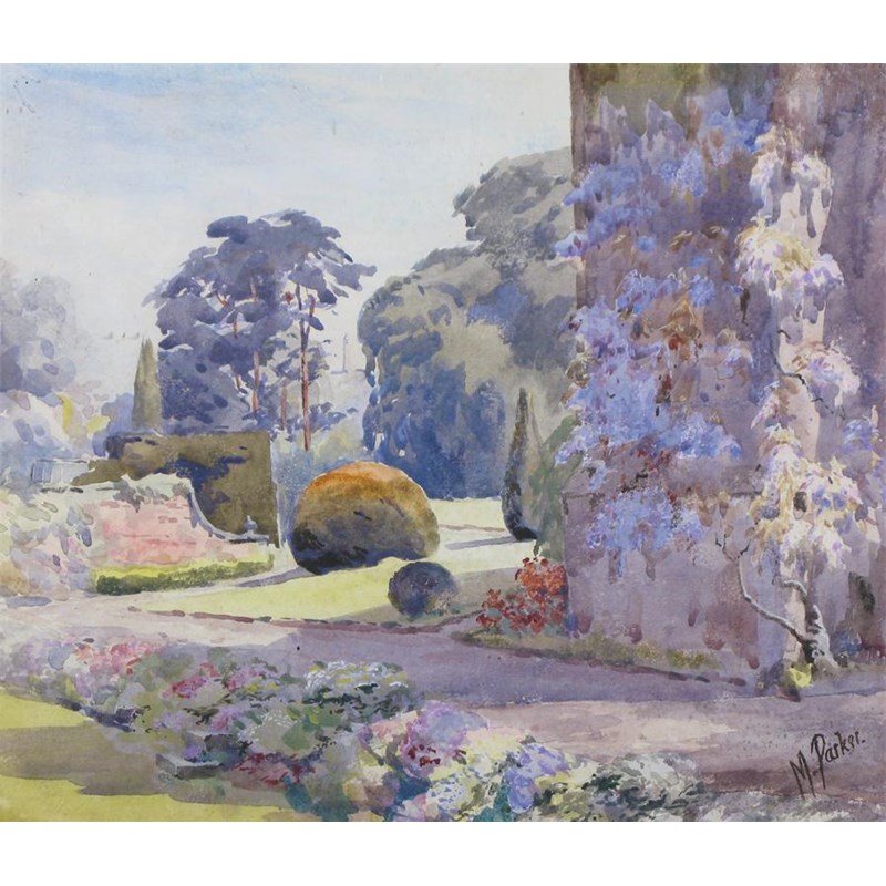 With a watercolour view of a garden by Maude Parker, signed 25 x 29cm (2)