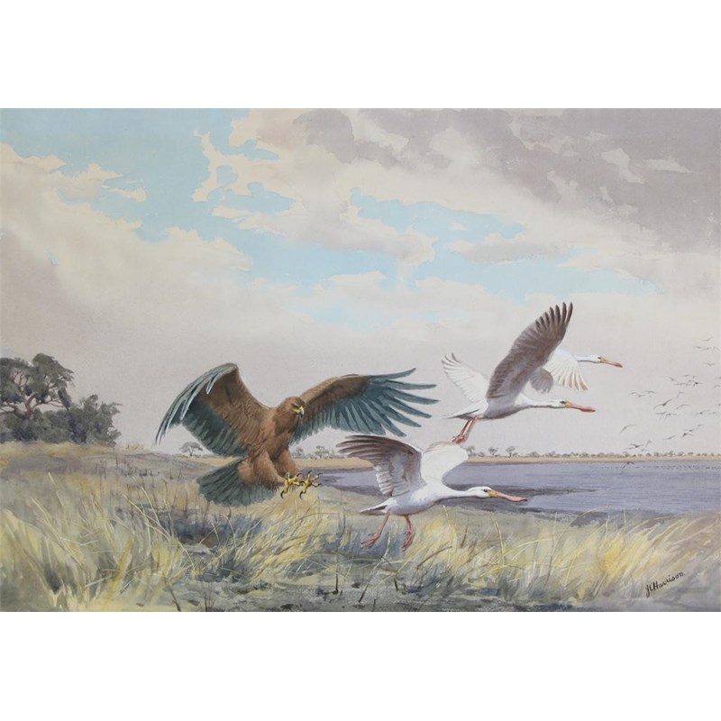John Cyril Harrison (1898-1985) Eagle and Hornbills Signed Watercolour