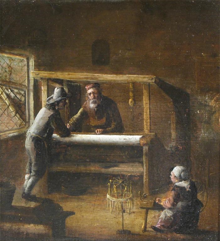 Figures at a loom in an interior