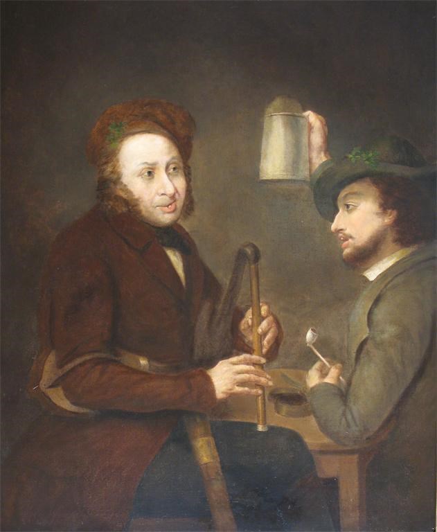 Scottish School c. 1800 A piper and a reveller in an interior Oil on canvas 108 x 88cm; 42½ x 34½in