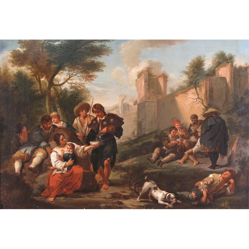 Circle of Jan Miel (Flemish 1599-1663) Travellers resting outside a city wall Oil on canvas 57 x...