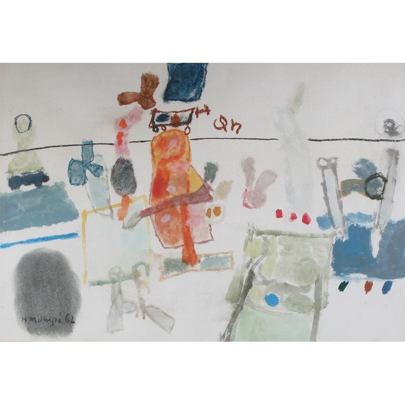 With a further abstract pastel signed indistinctly 30 x 43cm (2).