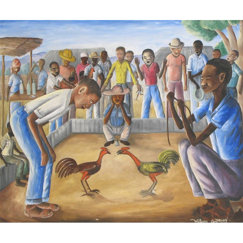 Wilson Bigaud (Haitian b.1931) The cock fight Signed Oil on board 51 x 61cm; 20 x 24in