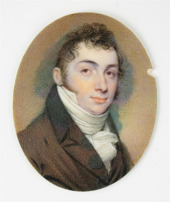 English School c. 1820 Portrait of a gentleman wearing a brown coat and white stock Oval