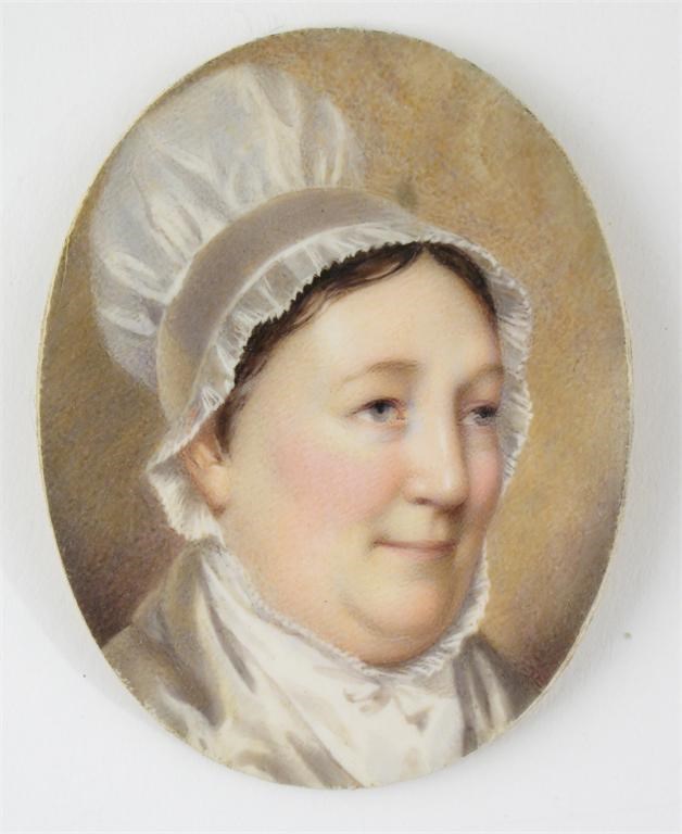 English School c. 1800 Portrait of a woman wearing a white bonnet Oval