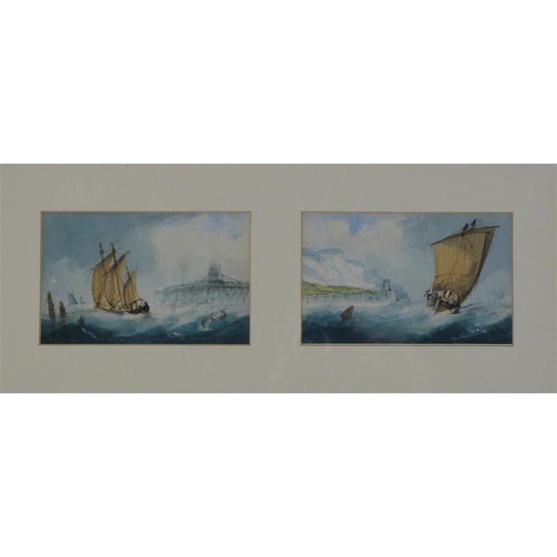 Richmond Markes (19/20th Century) Sailing boats in storms seas off the coast A pair