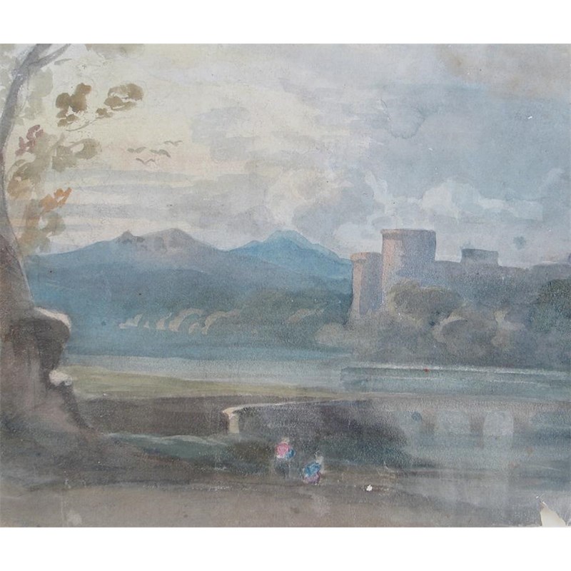 Follower of John Varley A Castle by a river Bears signature inscription and date on the reverse...