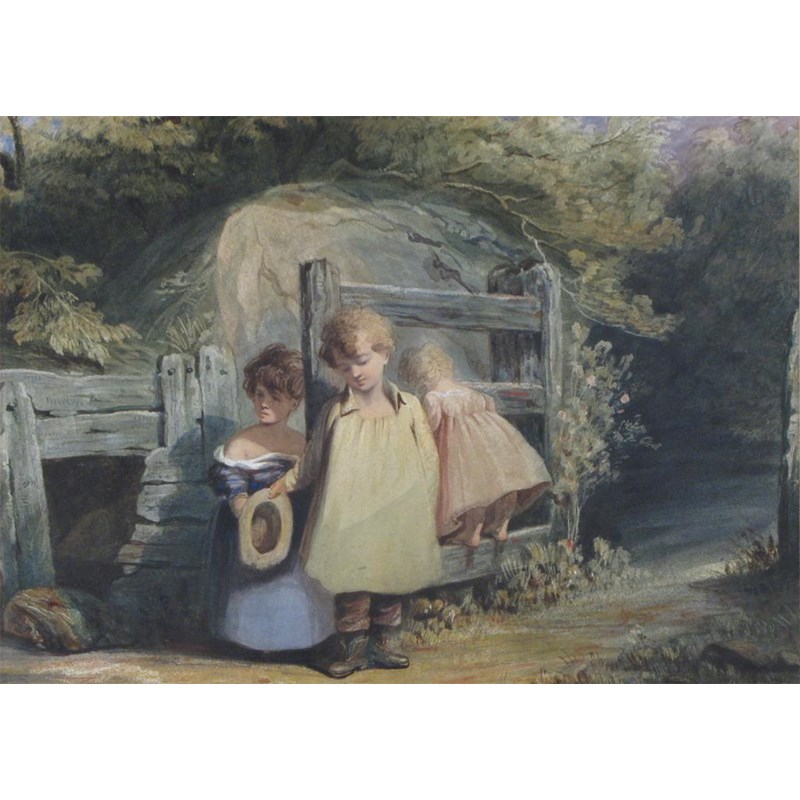 Circle of William Collins Children by a stile Watercolour 28 x 38cm; 11 x 15in
