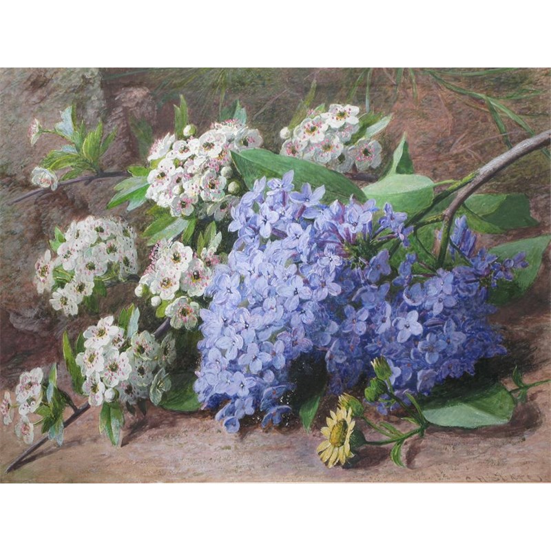 Charles Henry Slater (c.1820 - c.1890) Still life of blossom on a bank Signed Gouache 26.5 x...