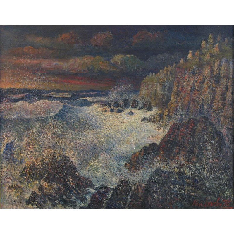 Ken Leech (20th Century) Stormy Brittany coast at dawn Signed and dated '78