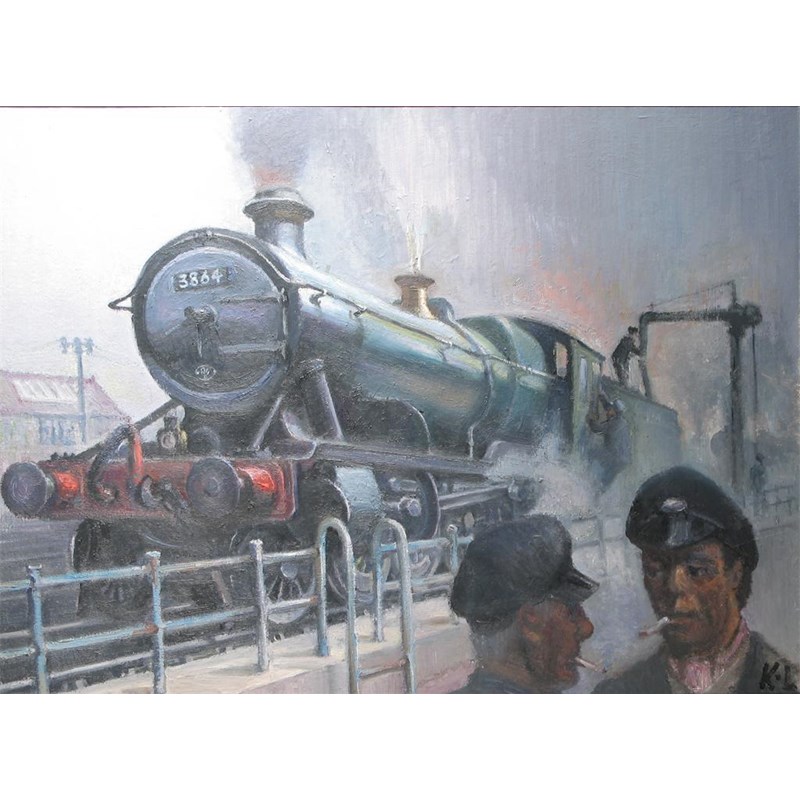 Ken Leech (20th Century) Express leaving Manchester at dusk; On shed.