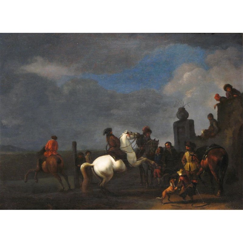 Circle of Philips Wouverman A hunting party in a landscape Oil on panel 33 x 45cm; 13 x 17in