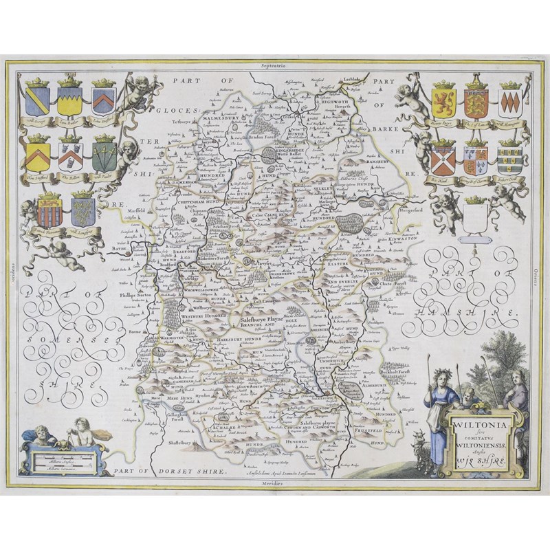Wiltshire - Janssonius (Joannes), Wiltonia comitatus Wiltoniensis, hand-coloured engraved map, 450 x 550mm, Amsterdam, [c.1650]