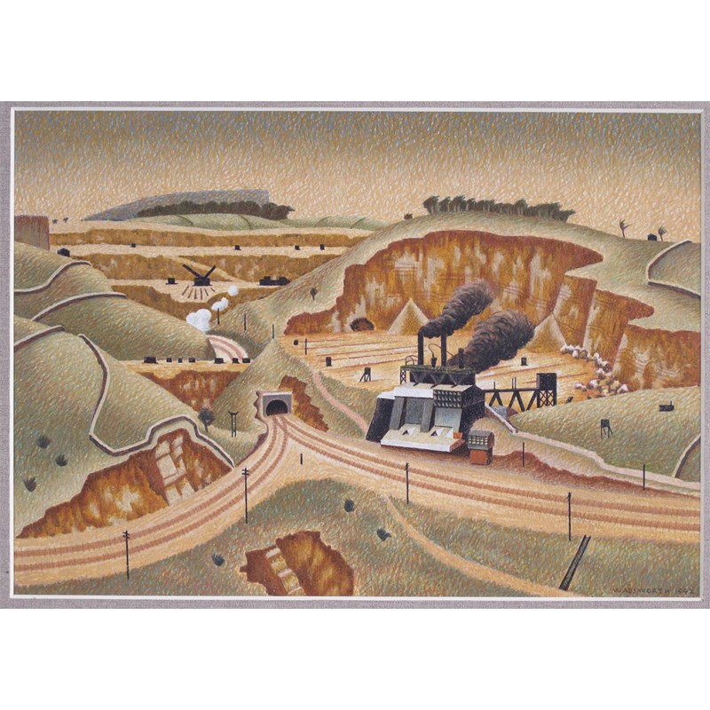 ‡Edward Wadsworth A.R.A. (1889-1949) A limestone quarry Signed and dated 1942 Tempera on panel 36...