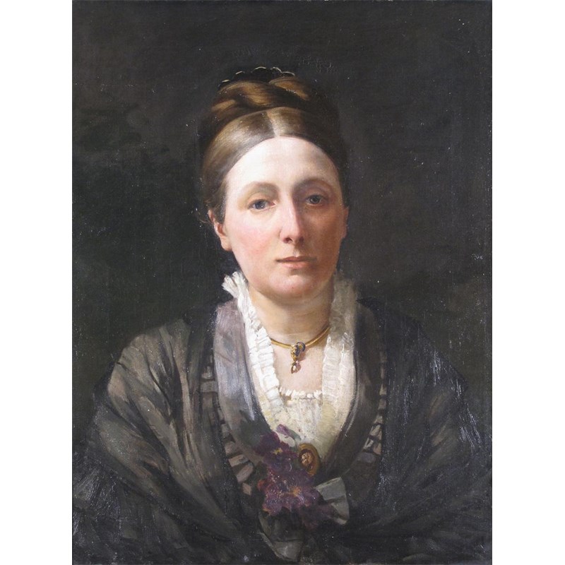 English School 19th Century Portrait of a lady with a corsage of violets Oil on canvas 67.5 x...