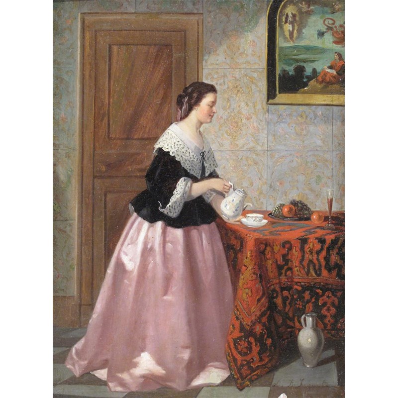 Aline de Senezcourt (French 19th Century) A lady pouring coffee Signed Oil on panel 22 x 30cm;...