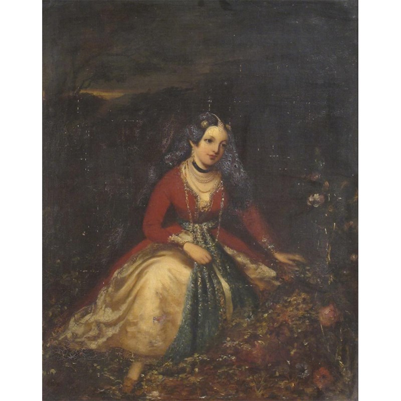 English School 19th Century A lady in eastern dress seated in a landscape Inscribed Serena Sewell...