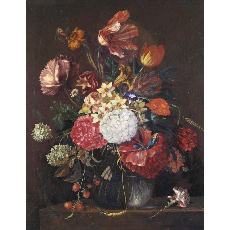 Dutch School Still life of flowers in a vase on a ledge Oil on canvas