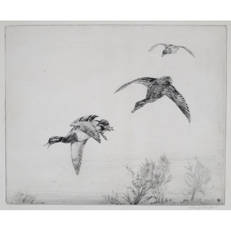 A covey of partridge; duck in flight