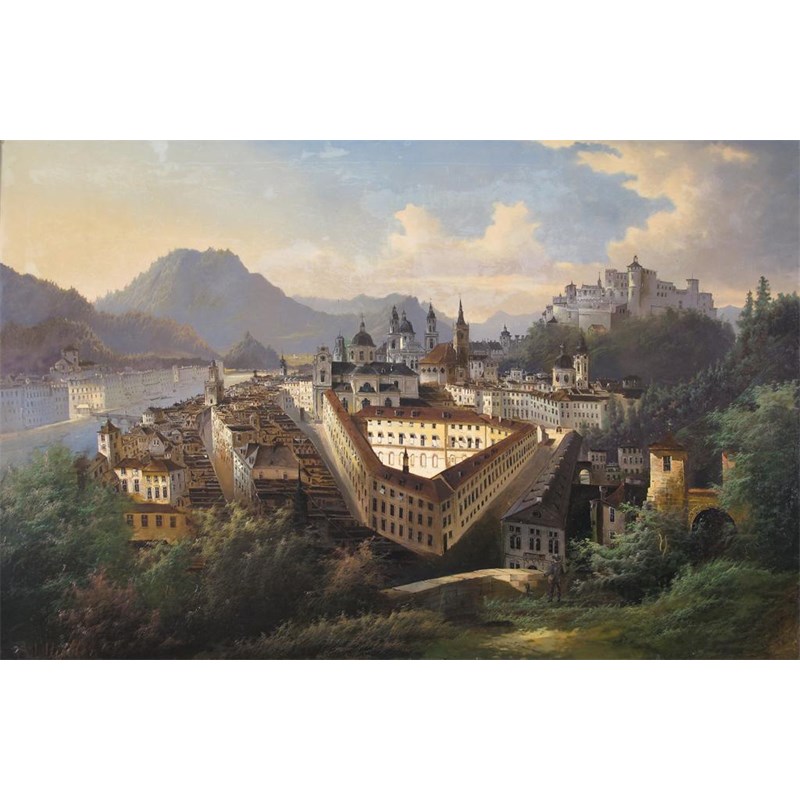Attributed to Andreas Johann Jakob Müller (German 1811-1890) A panoramic view of Salzburg Signed...