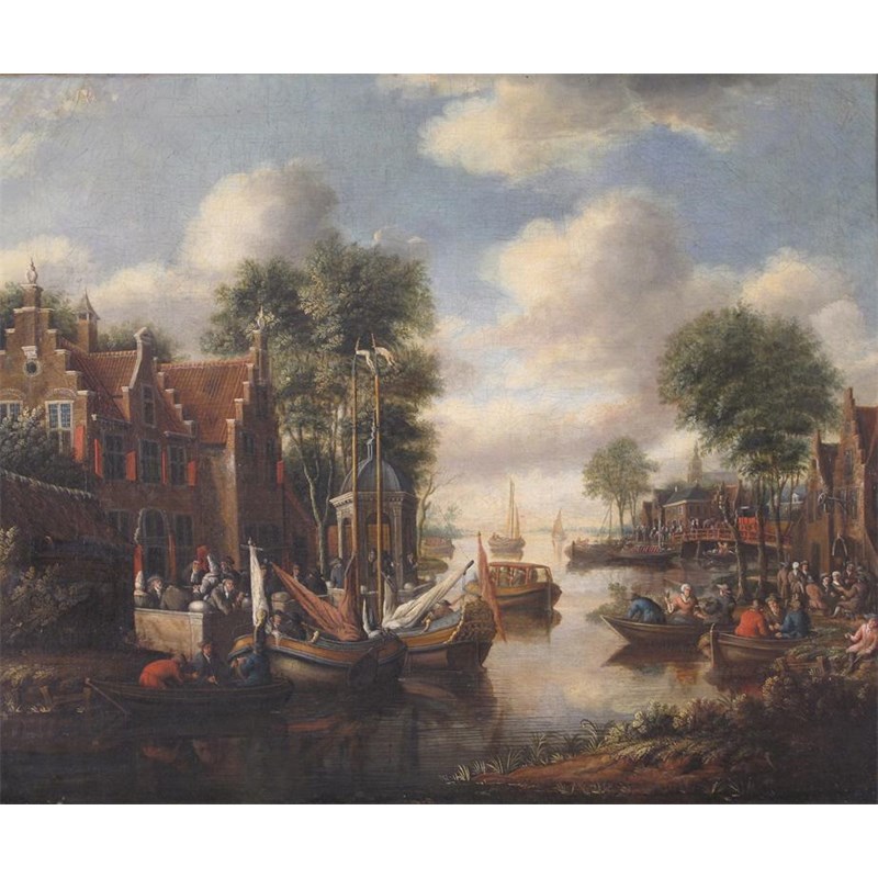 Follower of Rutger Verburgh Dutch river scene with a pleasure party making merry Signed...