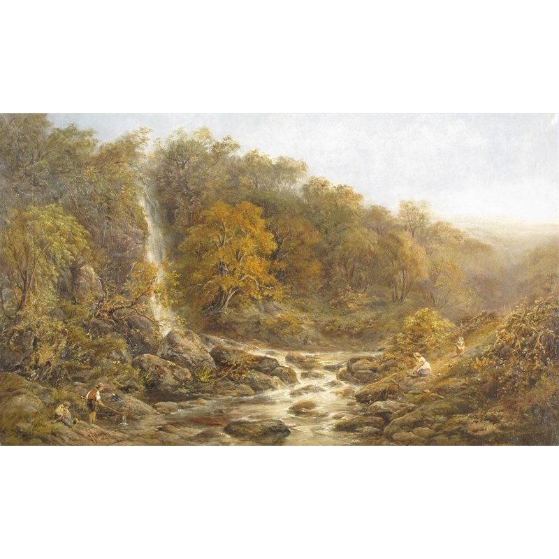 John Joseph Hughes (1820-1909) Fishing by the waterfall at Pistyll Rhaeadr