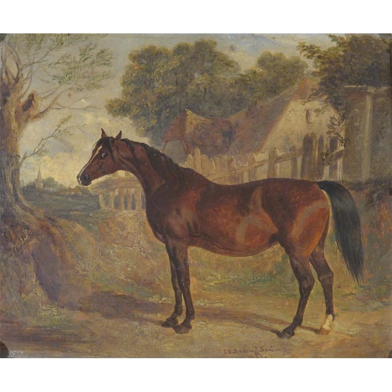 John Frederick Herring Senior (1795-1865) Bay horse in a village landscape Signed and dated 1844...