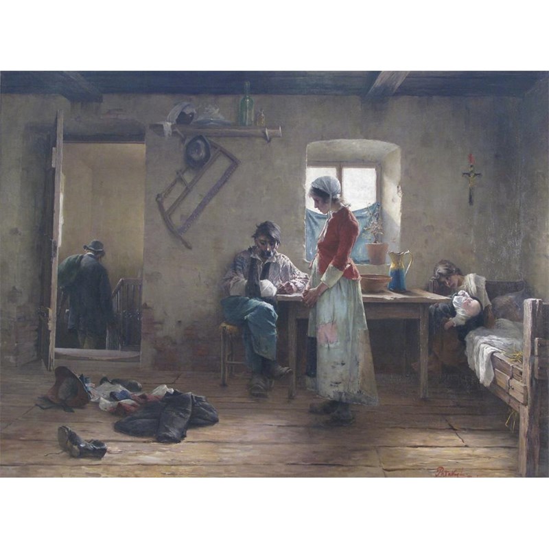 Lászlo Pataky Von Sospatak (Hungarian 1857-1912) Interior scene with a family Signed