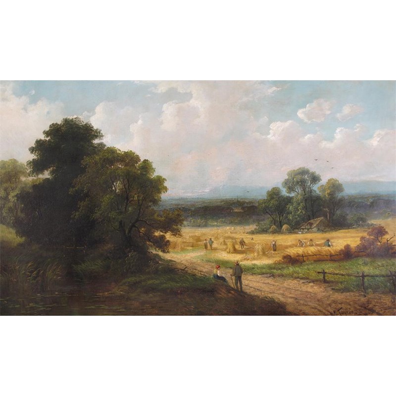 Attributed to Alfred Taylor (19th Century) Harvest landscape Signed Oil on canvas 75 x 126cm; 29½...