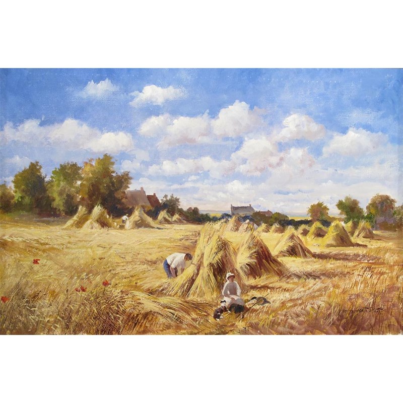 Robert Dumont-Smith (b.1908) Tying the corn stooks Signed Oil on canvas 51 x 77cm; 20 x 30¼in