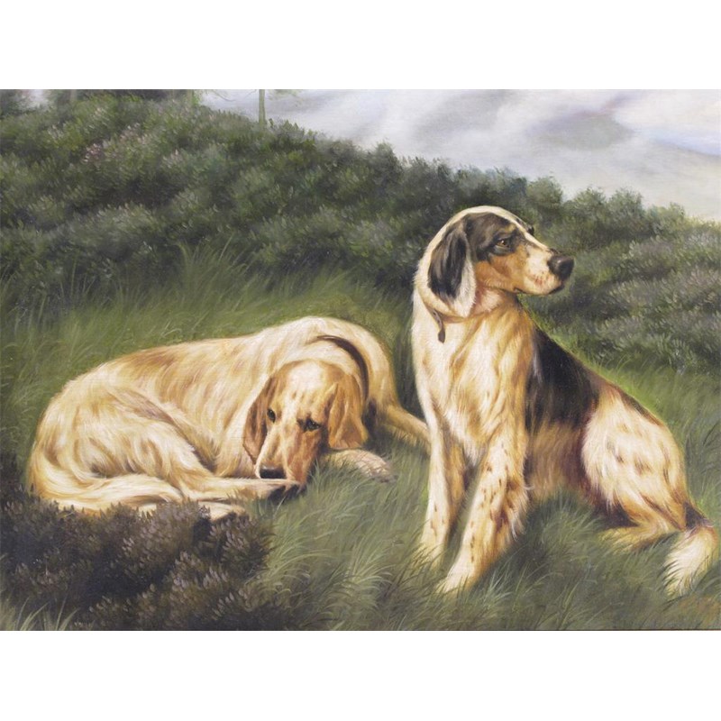 English School 20th Century Setters resting in heathland Oil on canvas 46 x 61cm; 18 x 20in