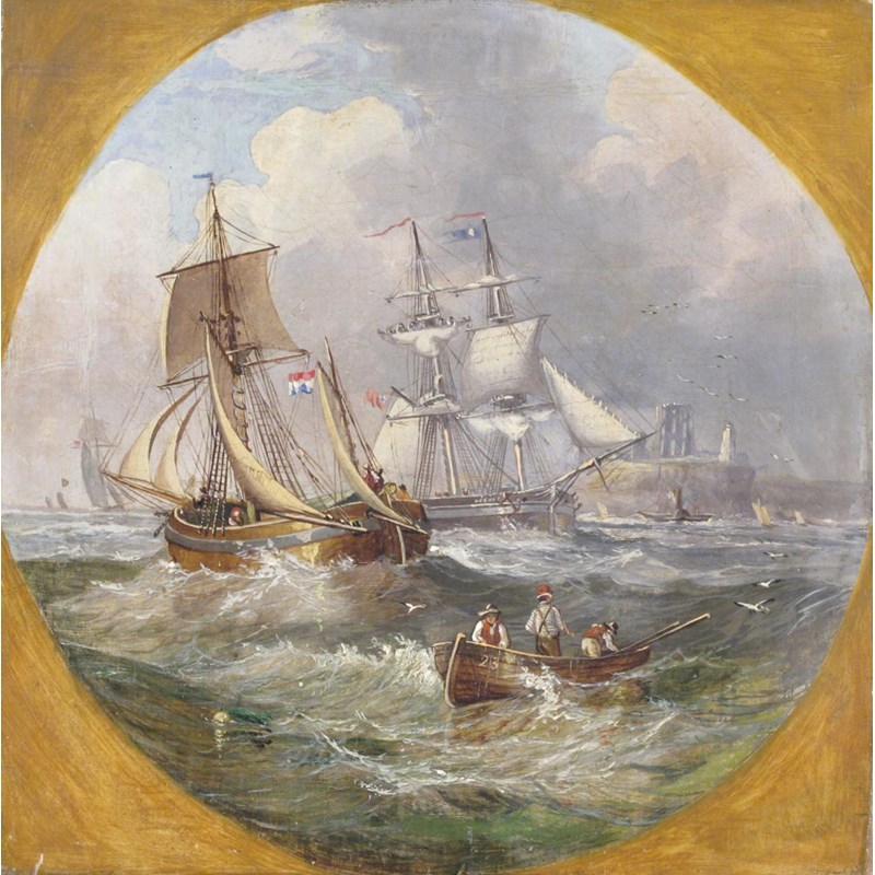 Dutch and British ships approaching the Tyne, Tynemouth Priory beyond